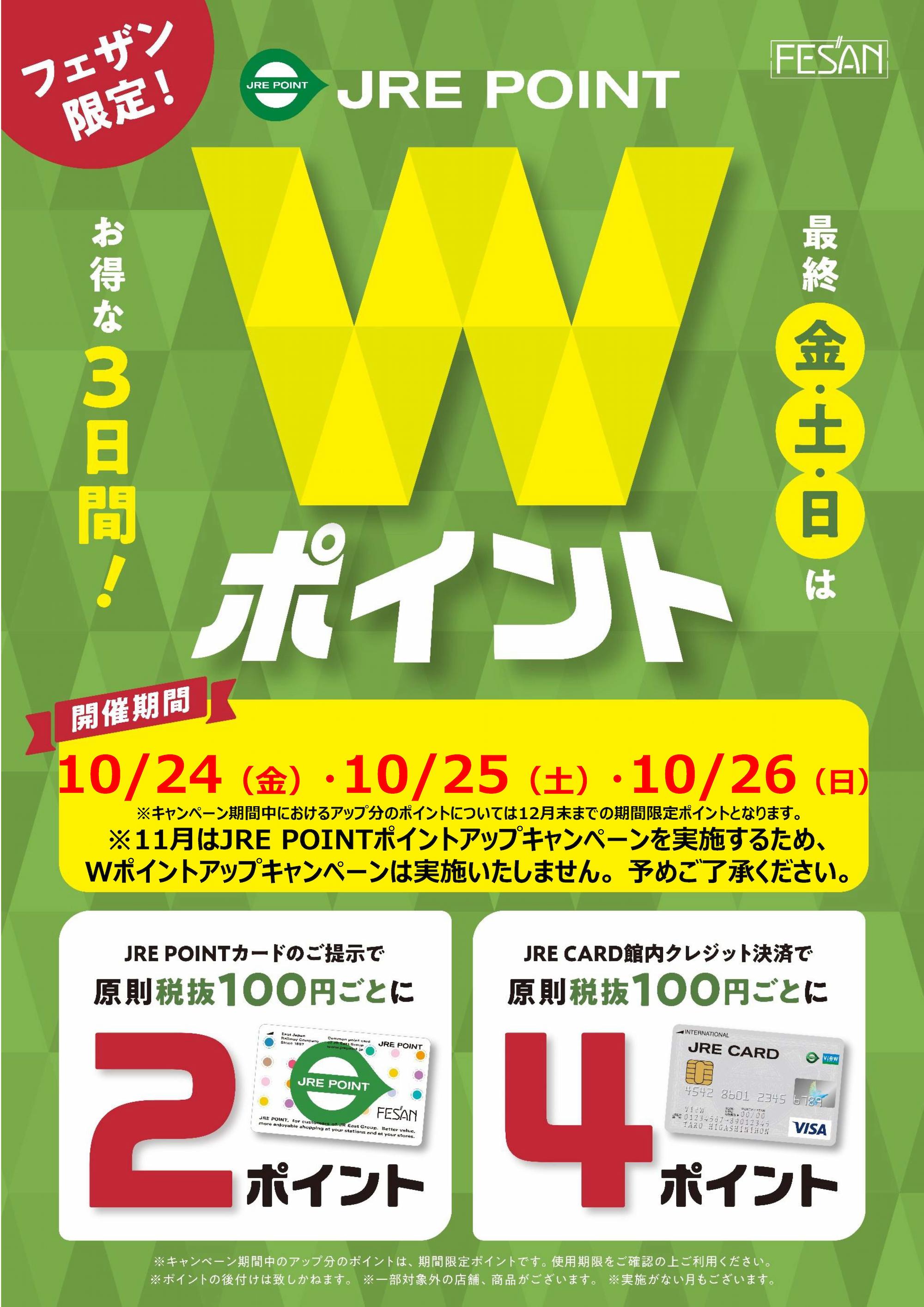 10/24(金)〜10/26(日)の3日間、JRE POINT対象店舗にて