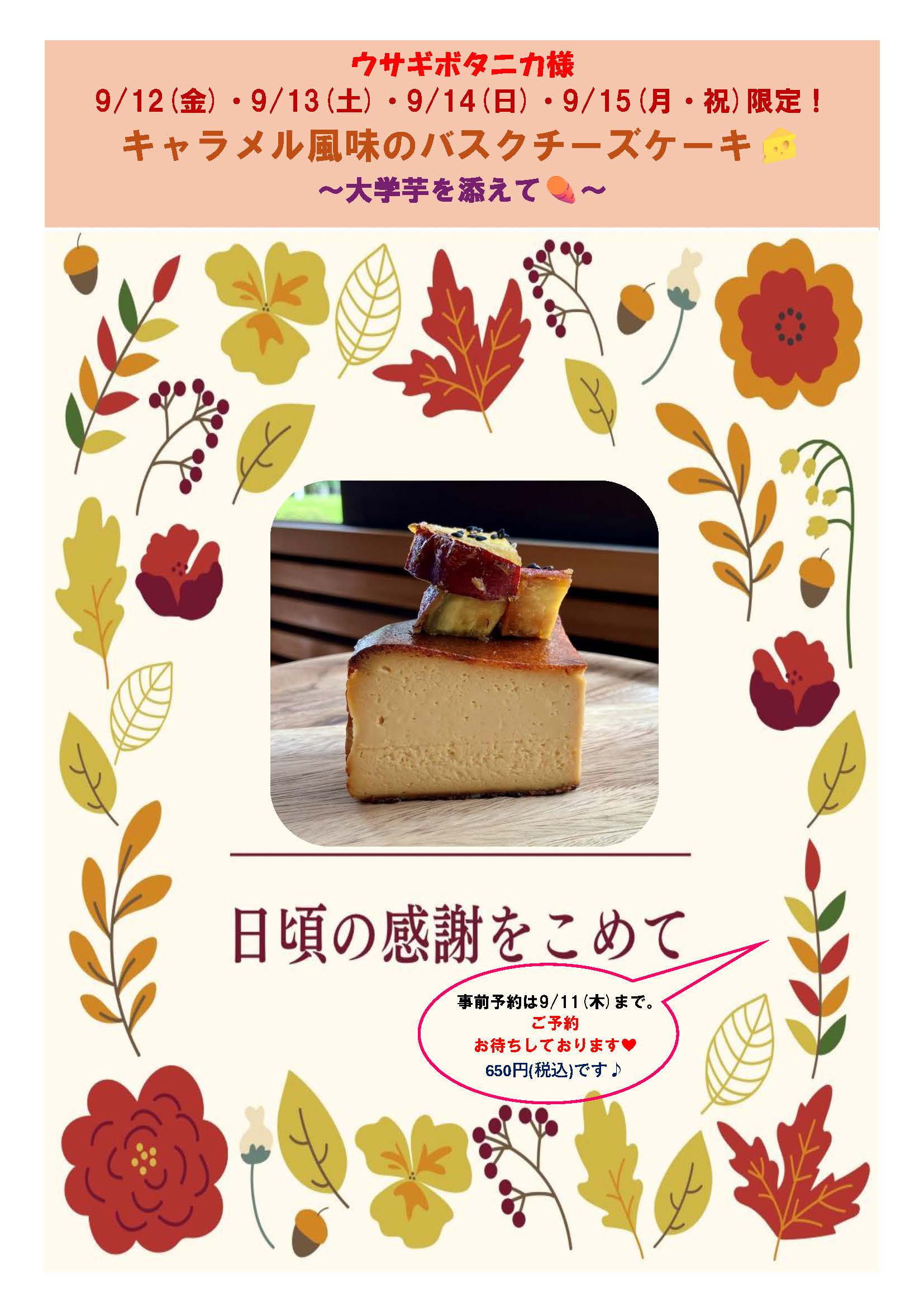 「キャラメル風味のバスクチーズケーキ ~大学芋を添えて~」