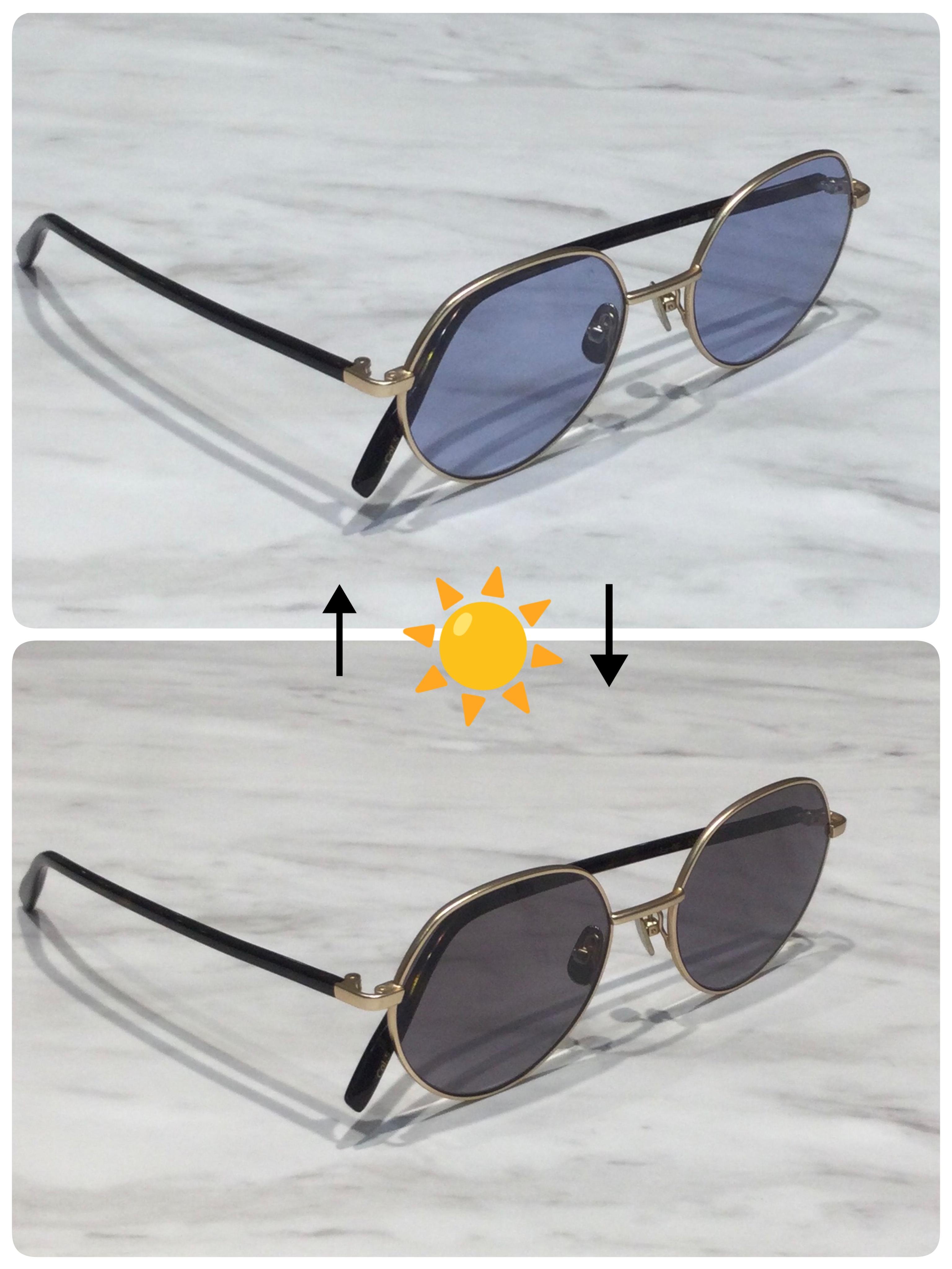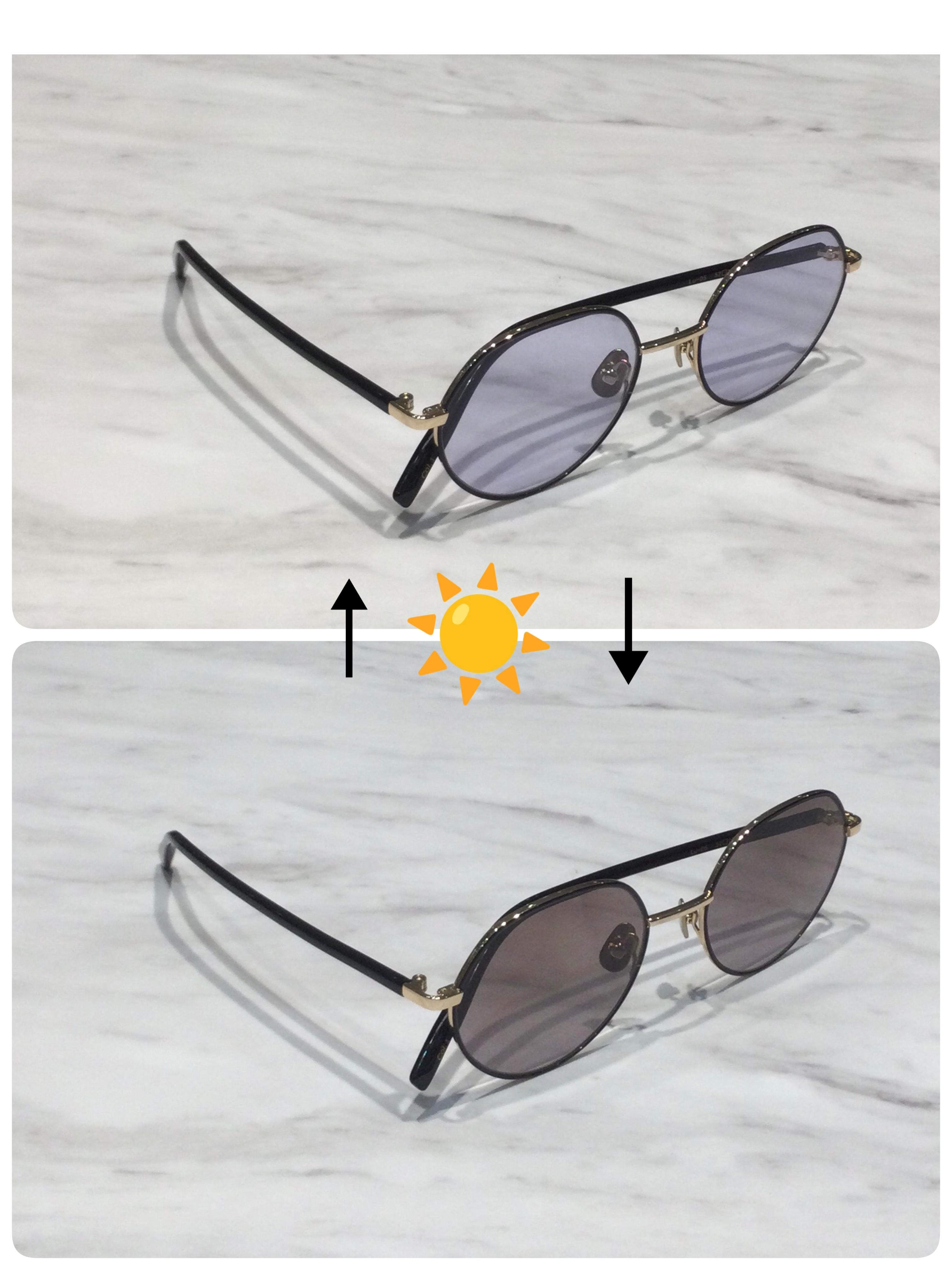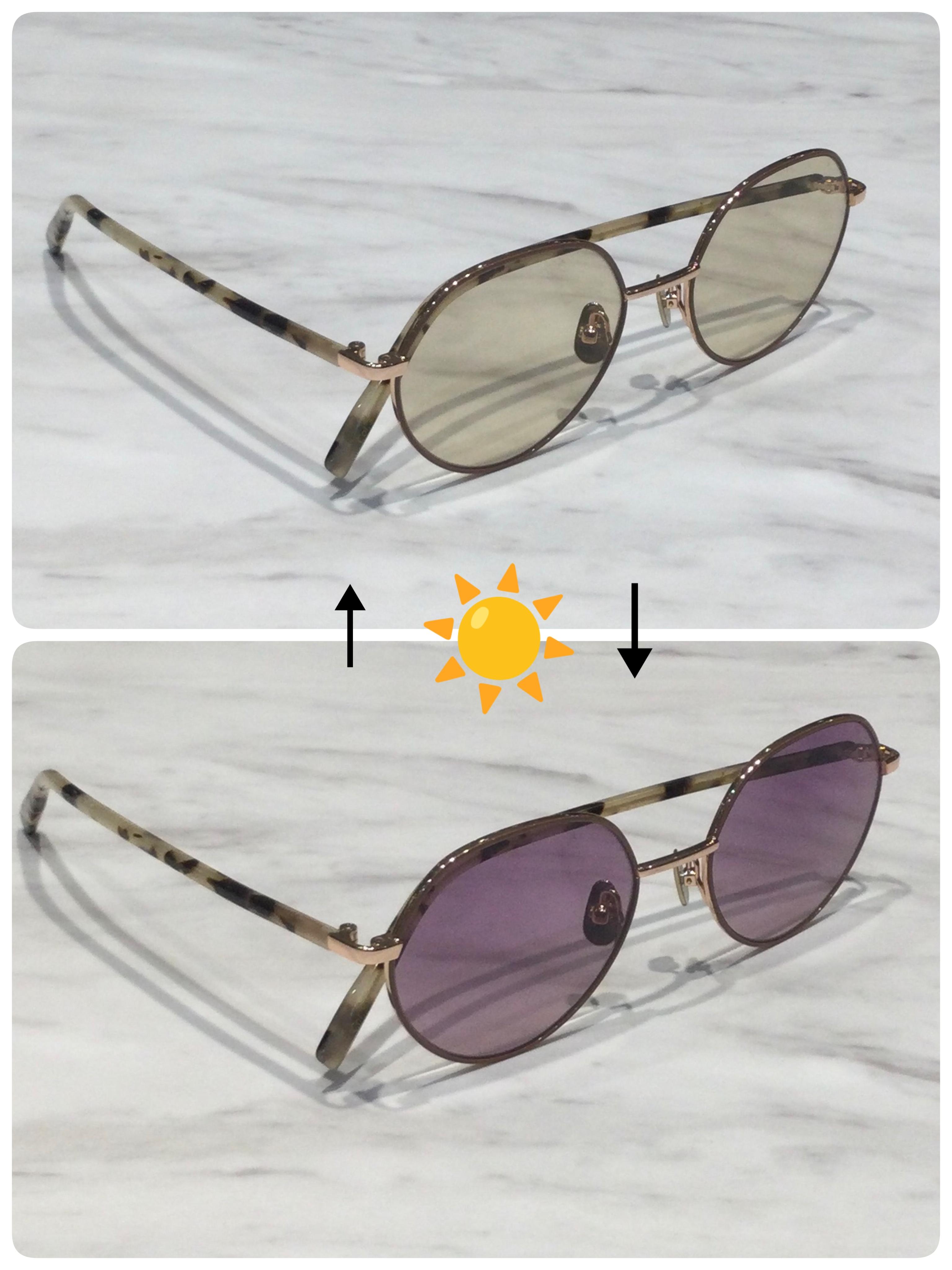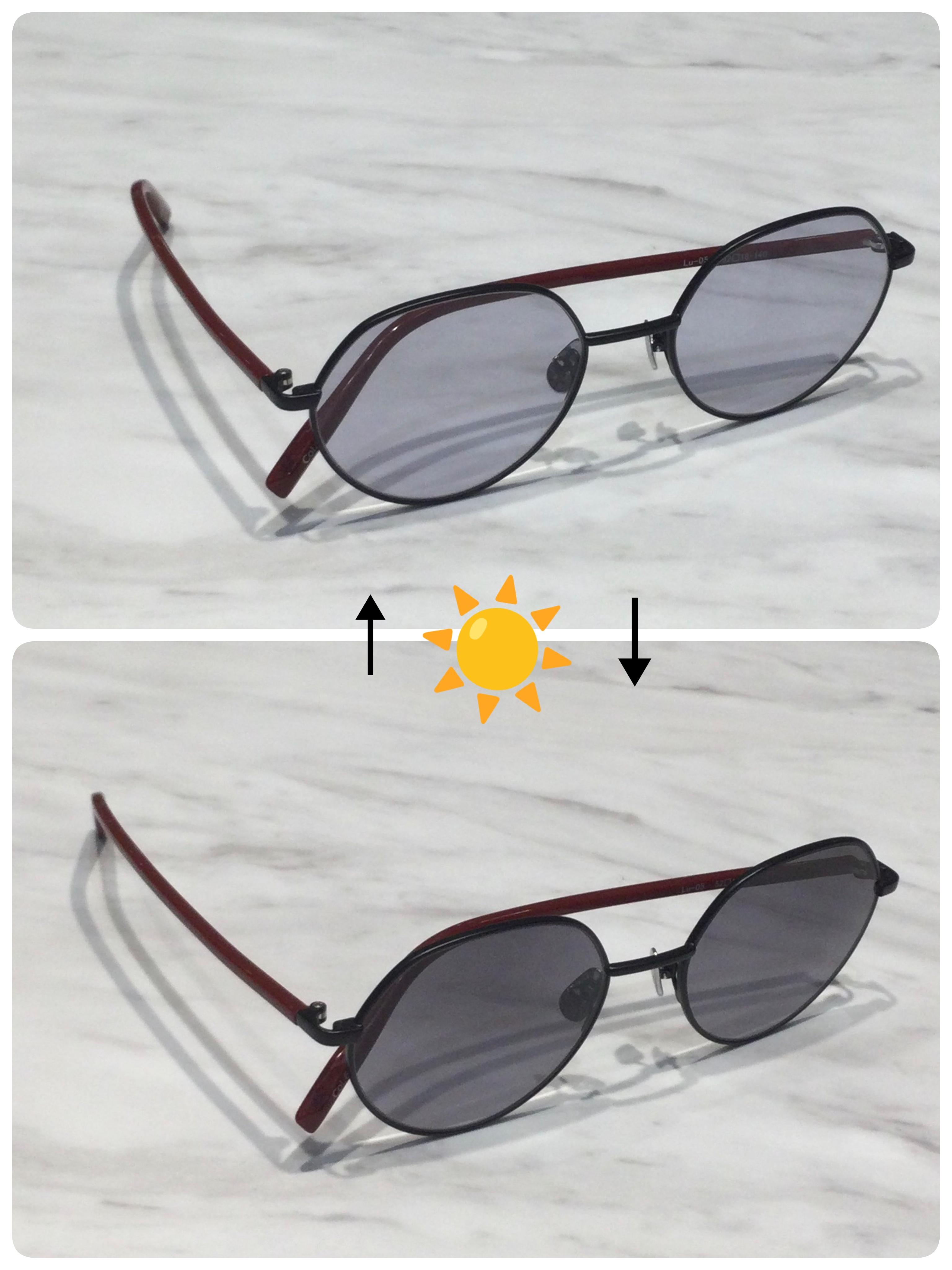 紫外線に反応して色が変わる調光レンズの紹介です。
