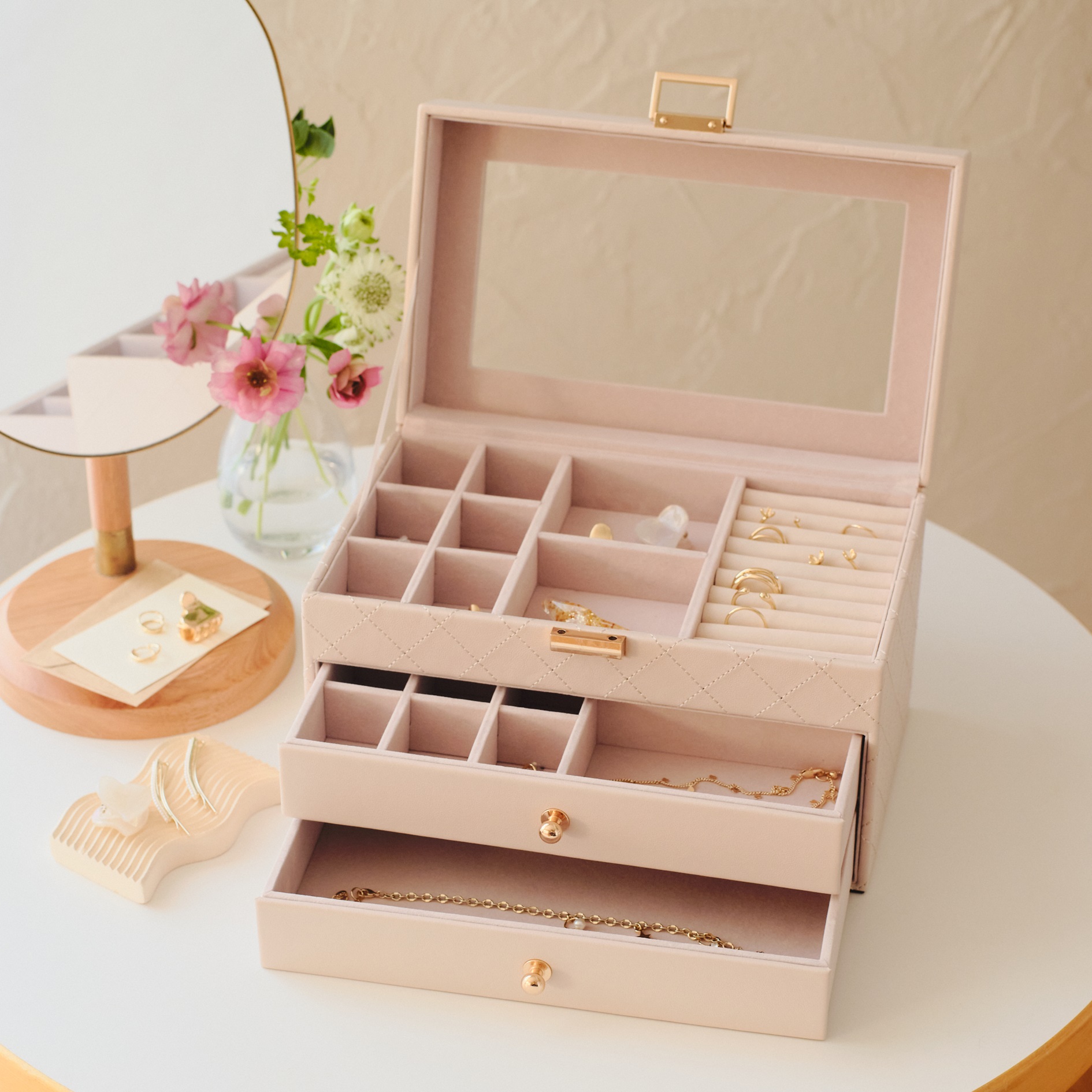 朝のアクセサリー選びが楽しくなる、気分が上がる収納ケースです。